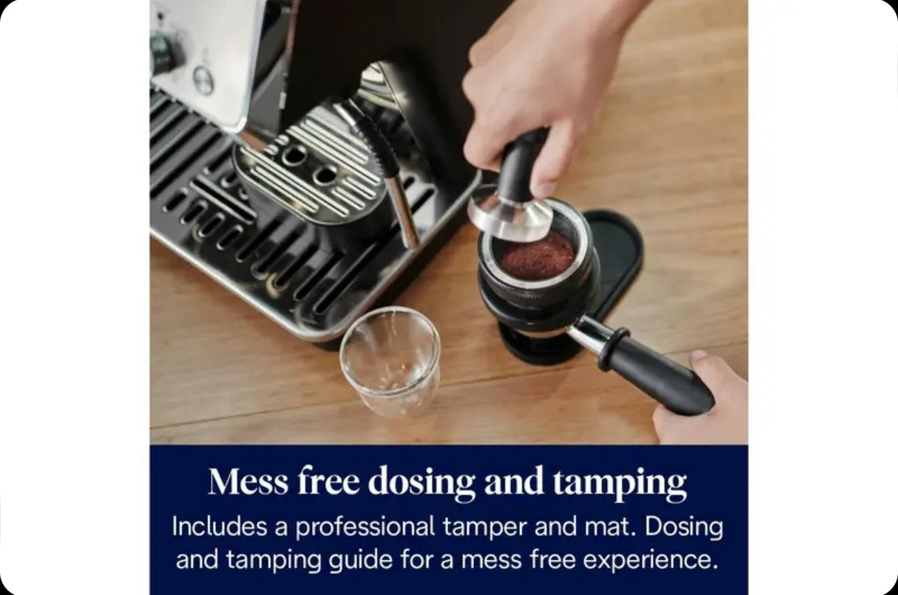 • Controls: Manual settings for grinding, dosing, temperature and brewing