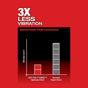 The M18 FUEL™ SURGE™ 1/4" Hex Hydraulic Driver is the quietest cordless fastening solution on the market. With Milwaukee's new FLUID-DRIVE™ Hydraulic Powertrain, users will experience up to 50% quieter operation, 3X less vibration for smoother operation, and faster driving speeds compared to standard impacts. The POWERSTATE™ Brushless Motor delivers up to 0-3,000 RPM with constant power output to drive screws faster. REDLINK PLUS™ Intelligence is the most advanced electronic system on the market, preventing damage to the tool and battery caused by overloading or overheating. For use with REDLITHIUM™ Compact Batteries or Extended Capacity Batteries (sold separately), which deliver more work per charge and more work over the life of the pack than competitive batteries on the market. The 4-Mode DRIVE CONTROL™ provides greater control over output speed and power for greater versatility. Self-Tapping Screw Mode is designed to reduce walking when starting self-tapping screws as well as reduce overdriving, breaking and stripping out screws.