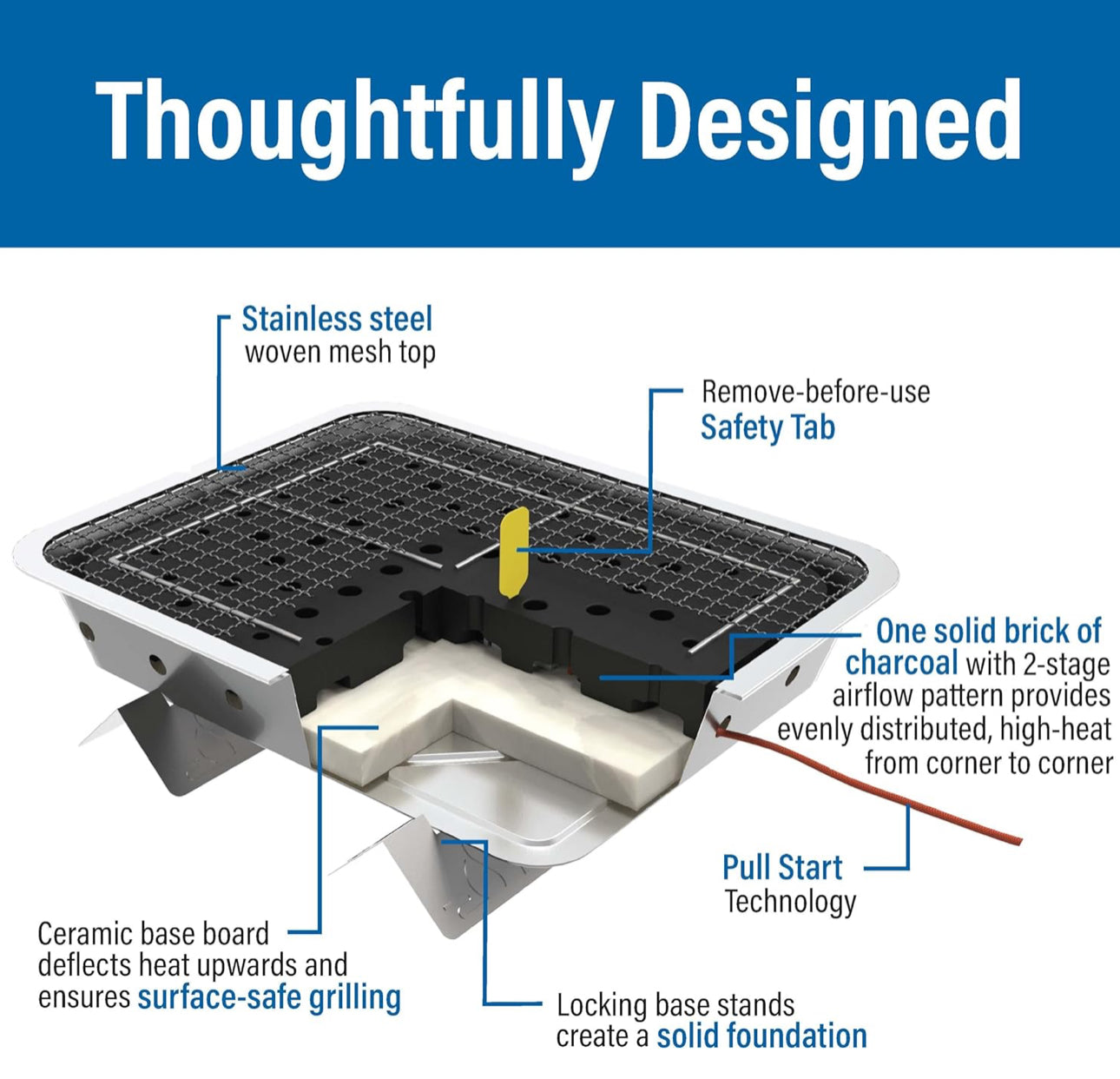 Pull Start Fire Grill Single Use Portable Disposable Charcoal BBQ With Pull Start Matchless Ignition