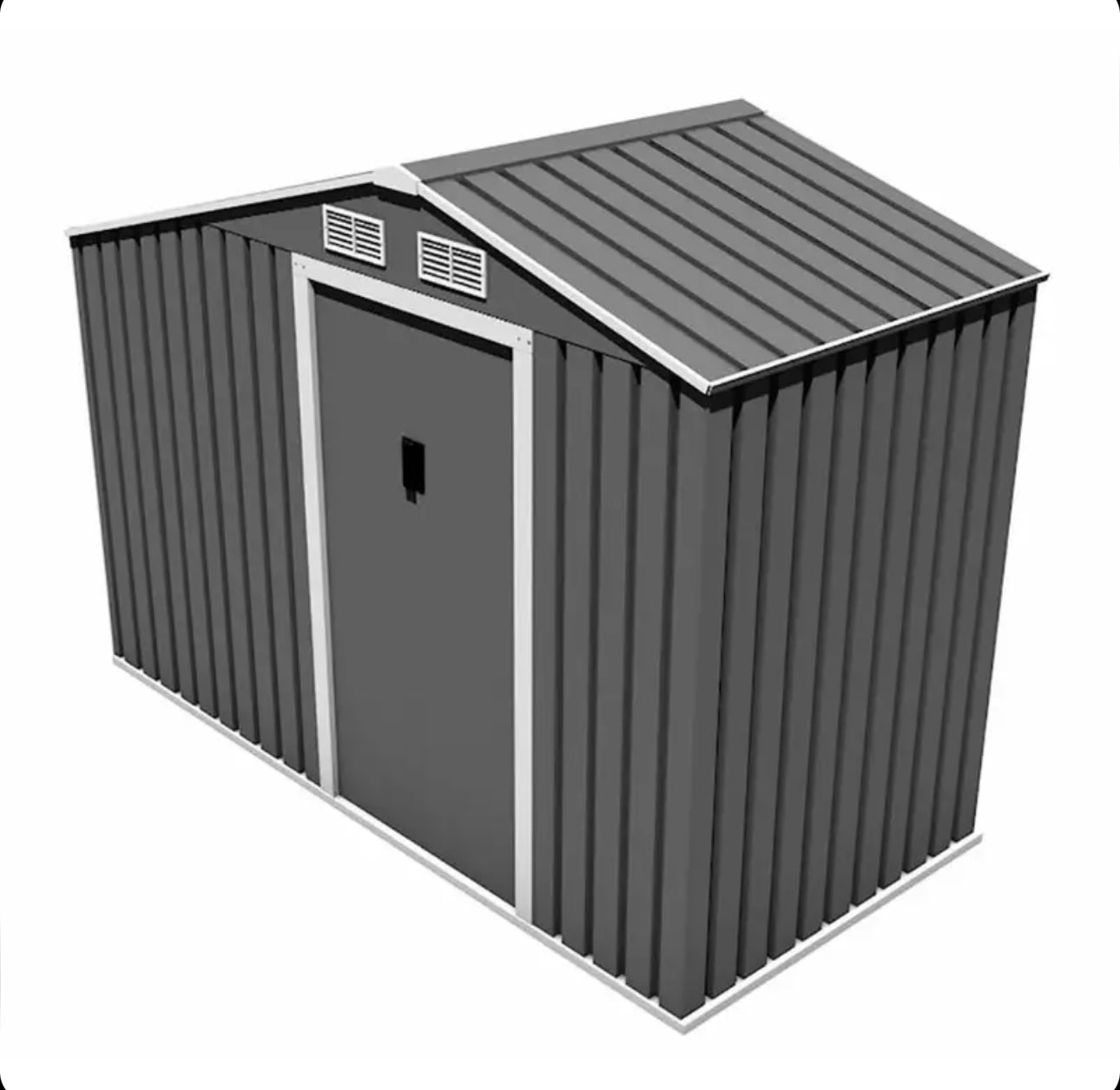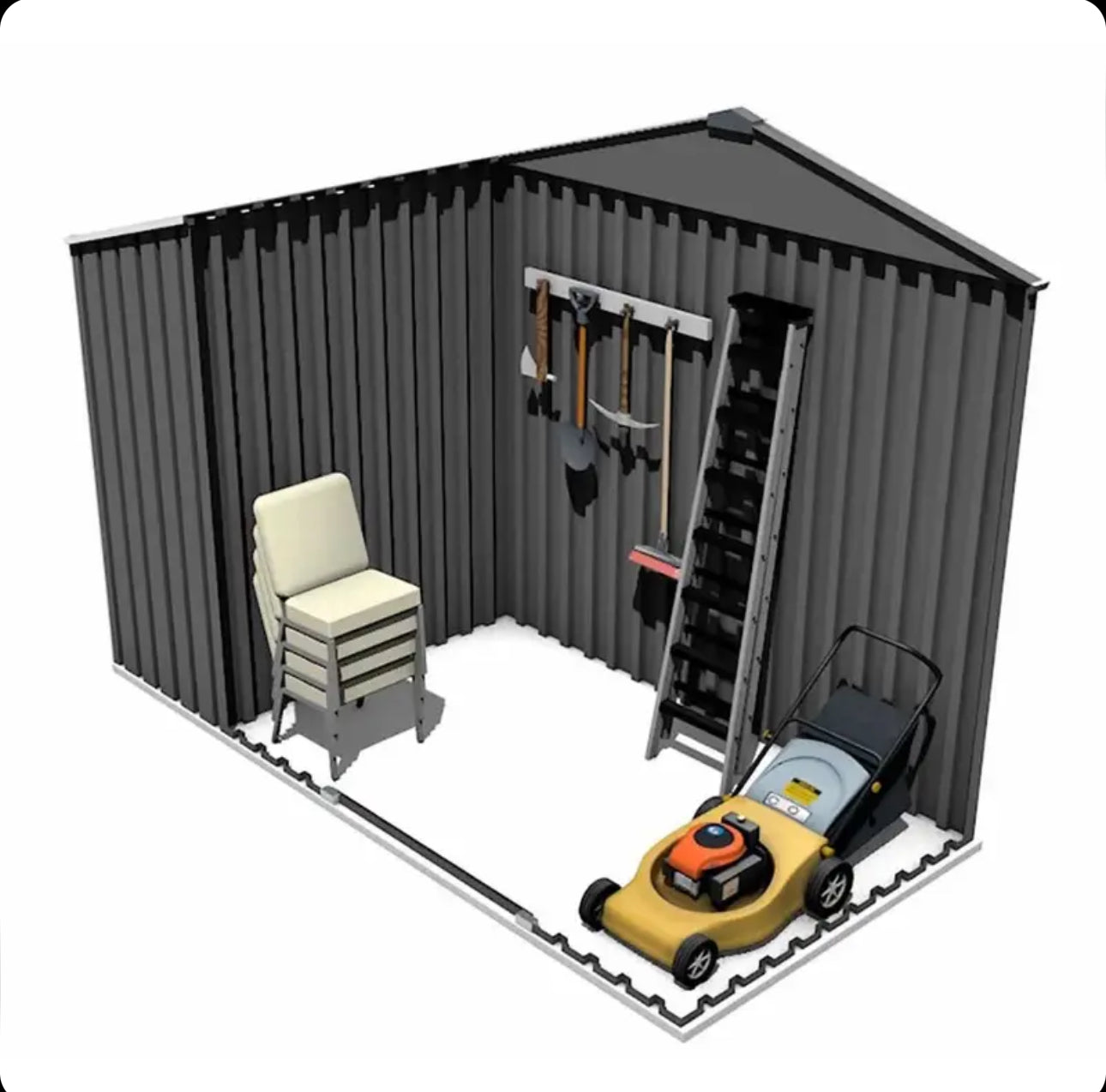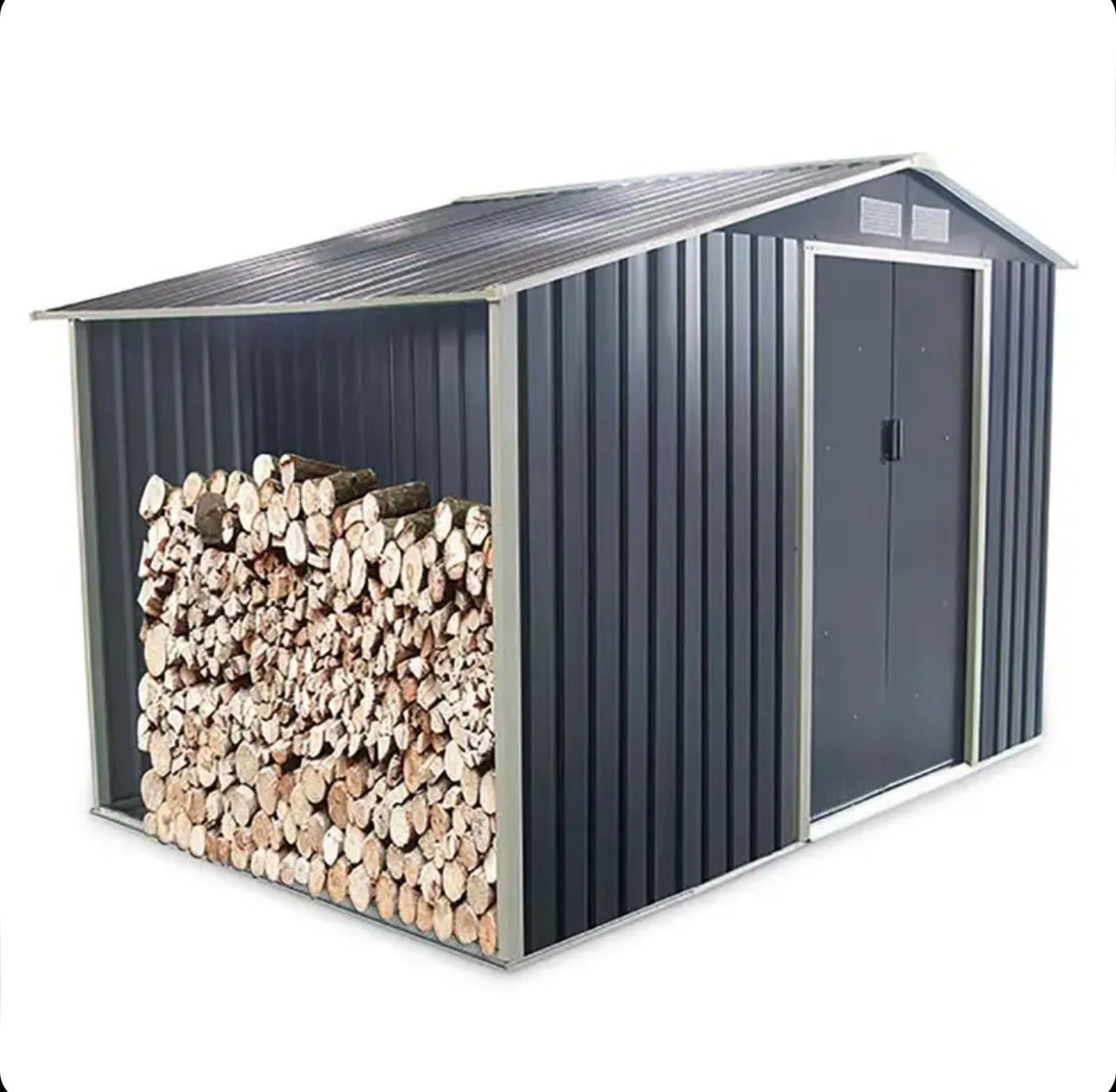 The Gardiun Toronto metal garden shed is made of hot-dip galvanized steel sheet. It features ribbed sides, a double sliding door, a gable roof, and the great advantage of incorporating an external storage and shelter. The Gardiun Toronto metal garden shed is ideal for storing tools and other gardening items, bicycles, and firewood.